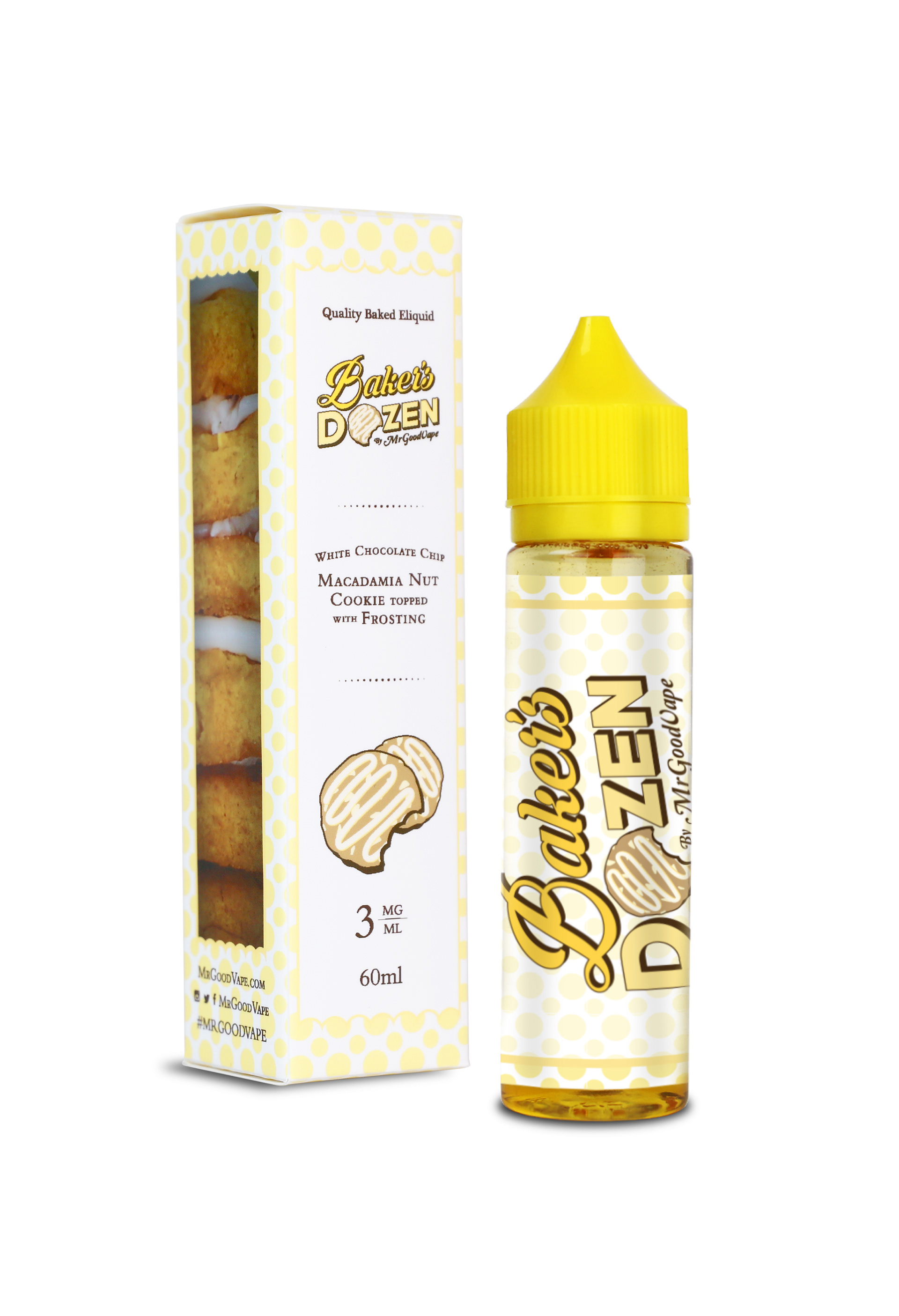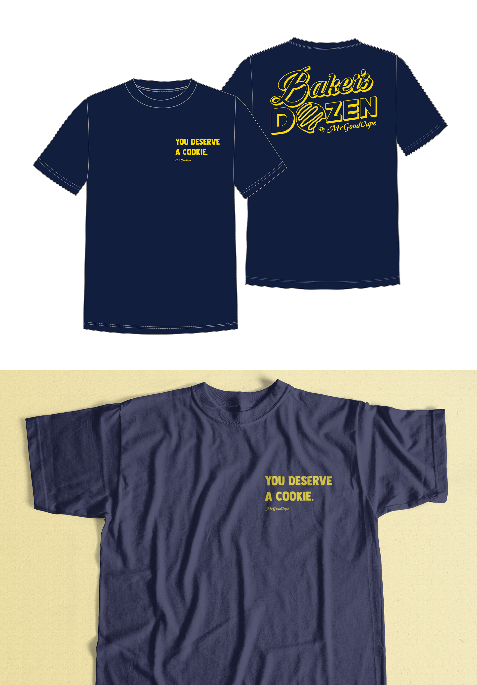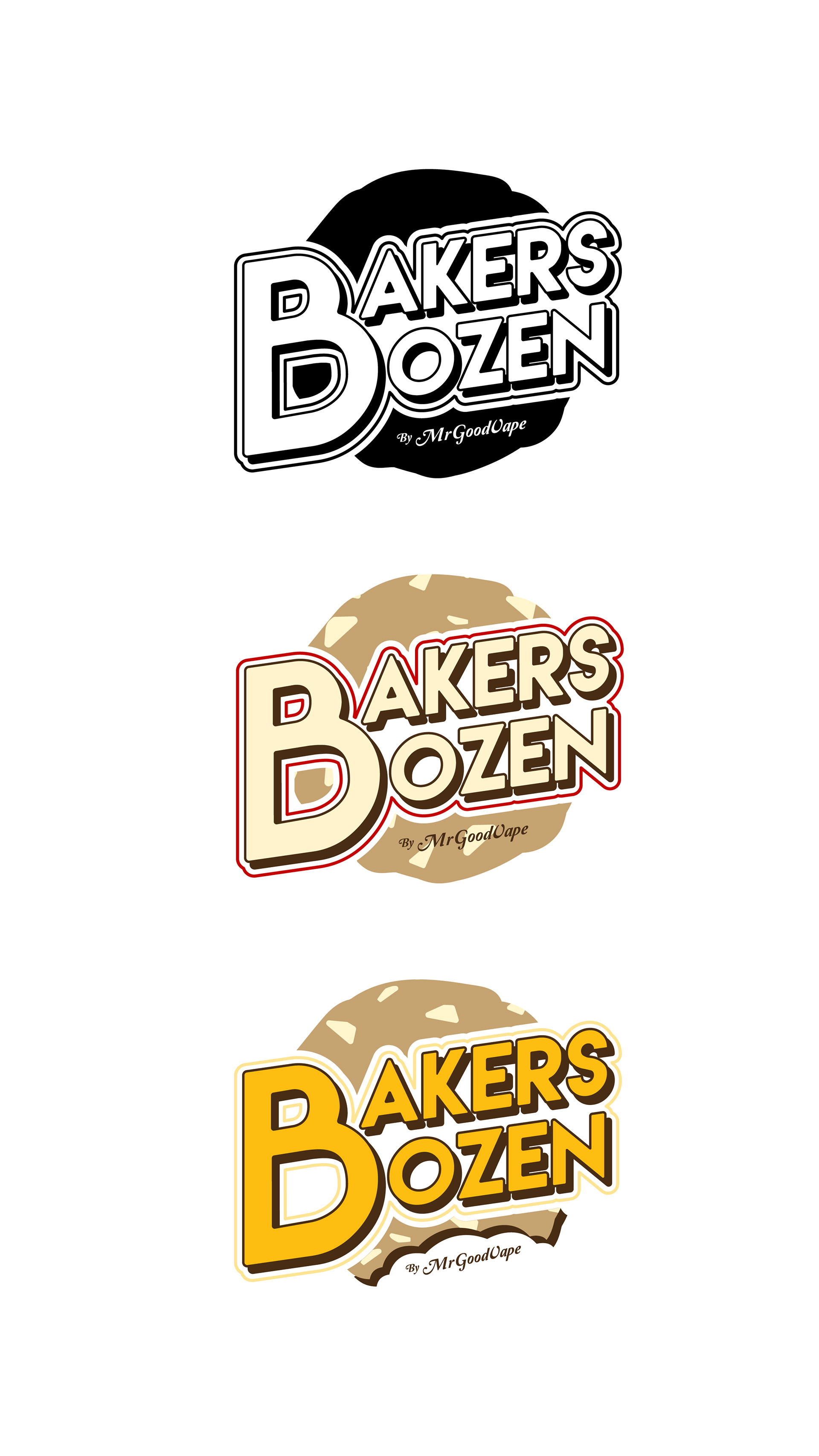 Working with the founder and the product development team, I designed the branding and marketing material's for Mr.GoodVape's latest flavor, Baker's Dozen. I used the original Mr.GoodVape's brand font for the "Baker's" portion of the logo to keep some brand recognition and landed on emphasizing the name instead of the cookie as a point of reference as the box and logo be small over all.