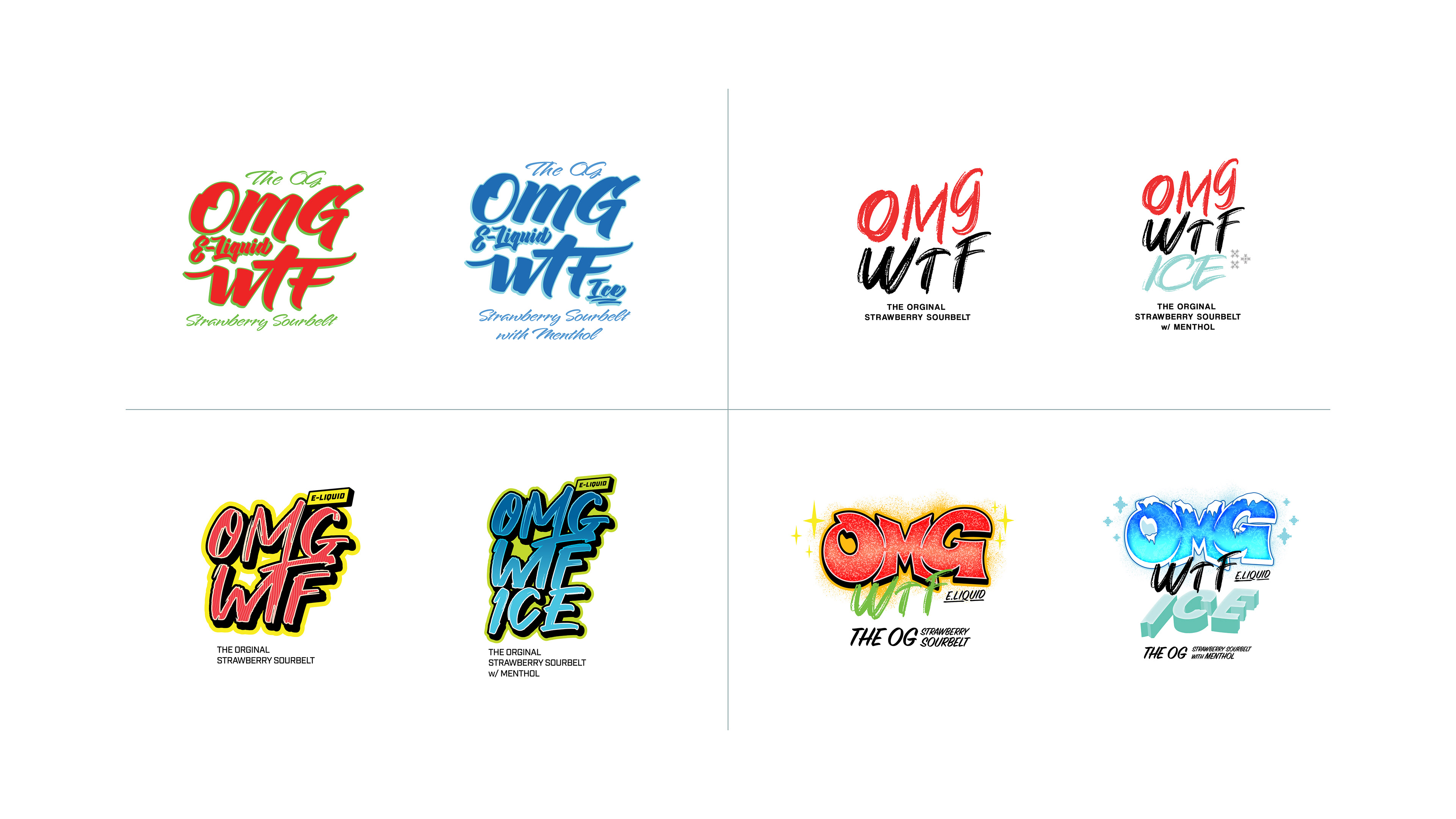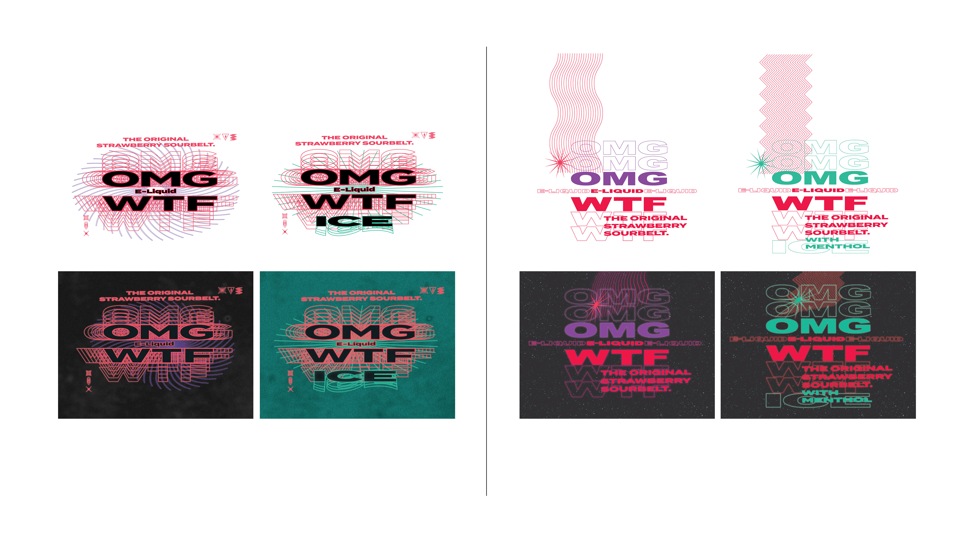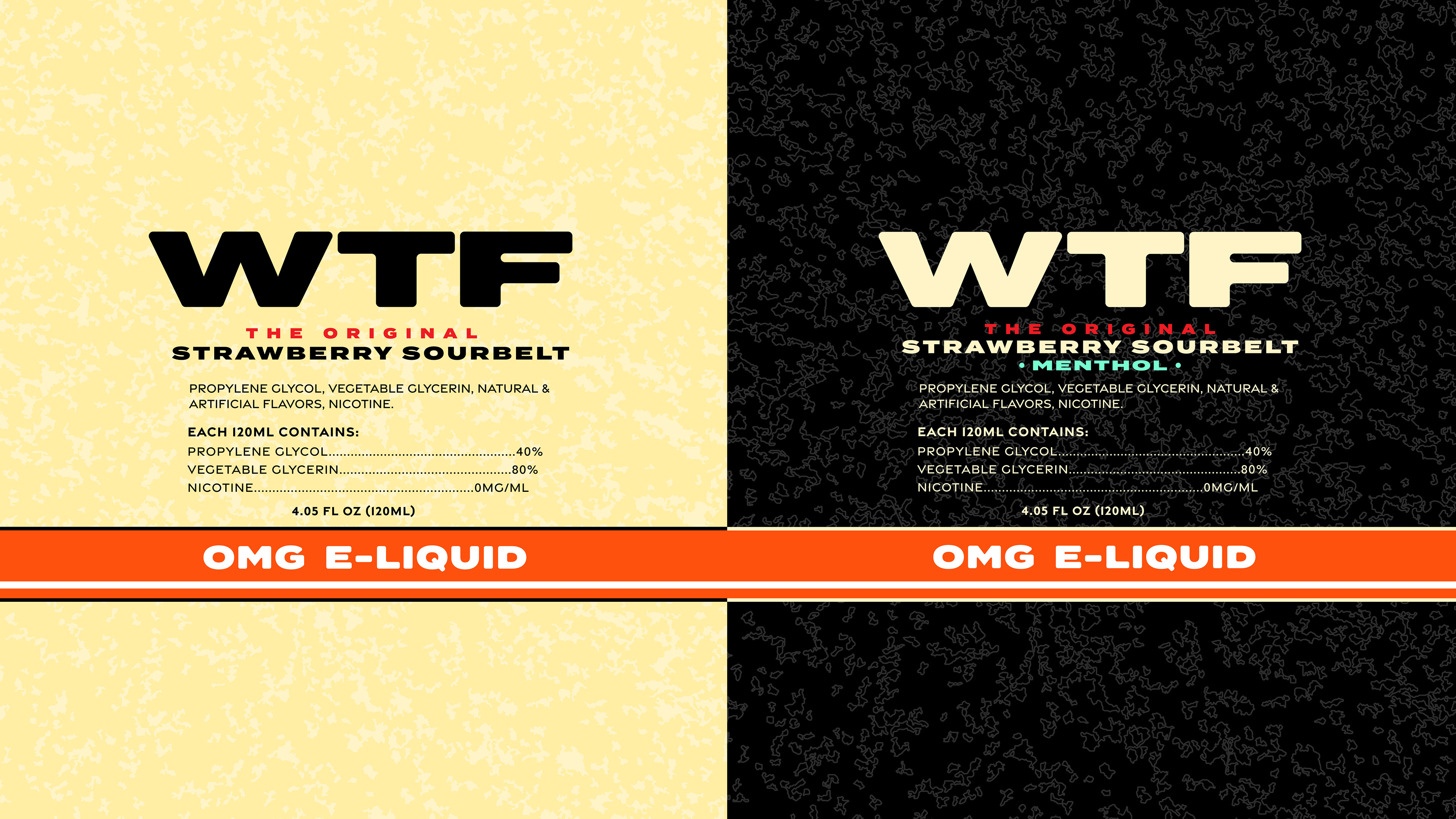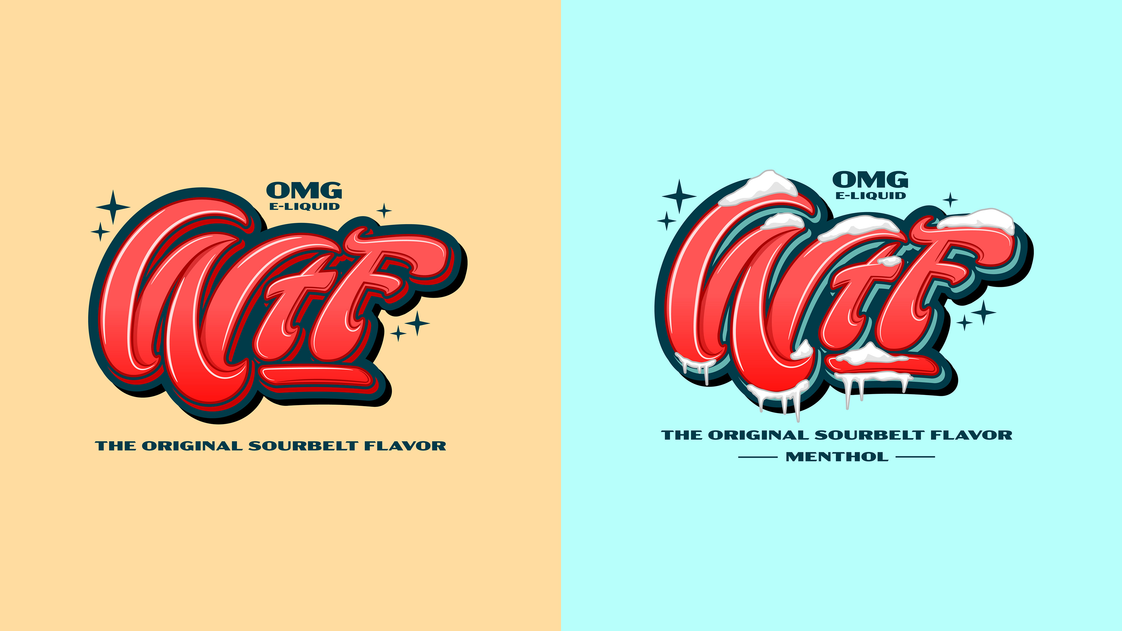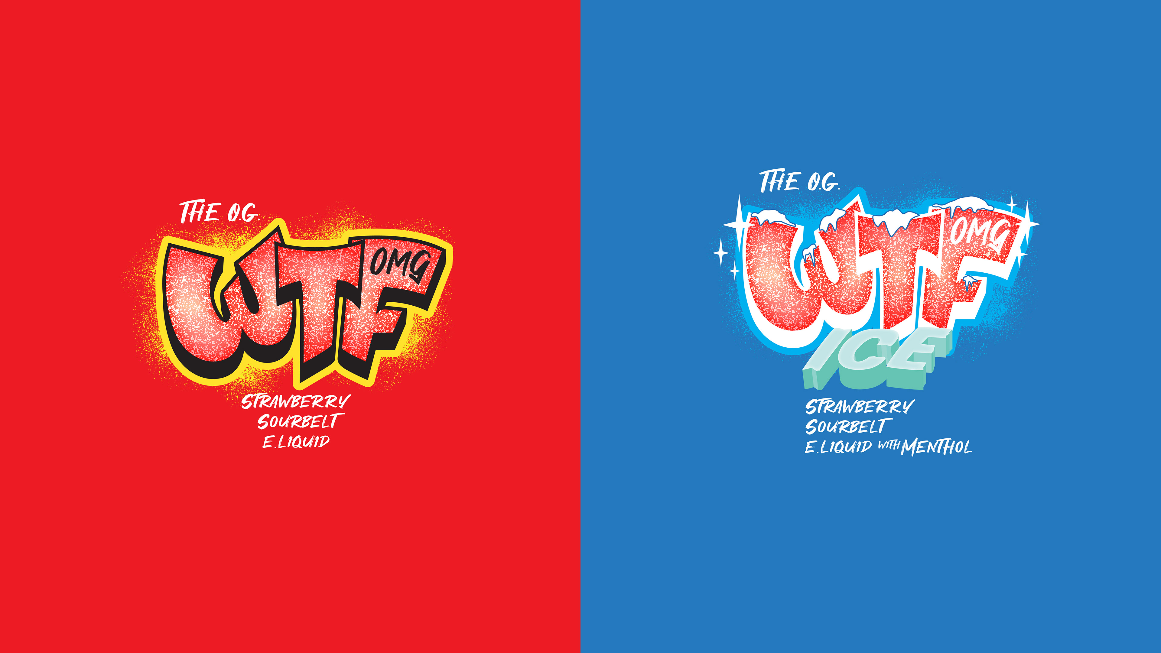 Omg-Wtf the iconic sour belt flavored e-liquid wanted to rebrand their most iconic flavor. The team wanted something completely different from the previous design, consisting of a fun, street style that could easily stand out from the rest of the brands on the shelf and also wanted a clear indication of the same flavor offered in a menthol version.